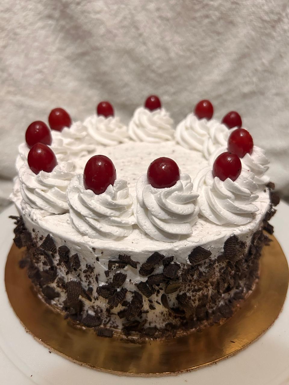 This cake is made with rich, moist chocolate sponge layered with fresh cherries and light,...